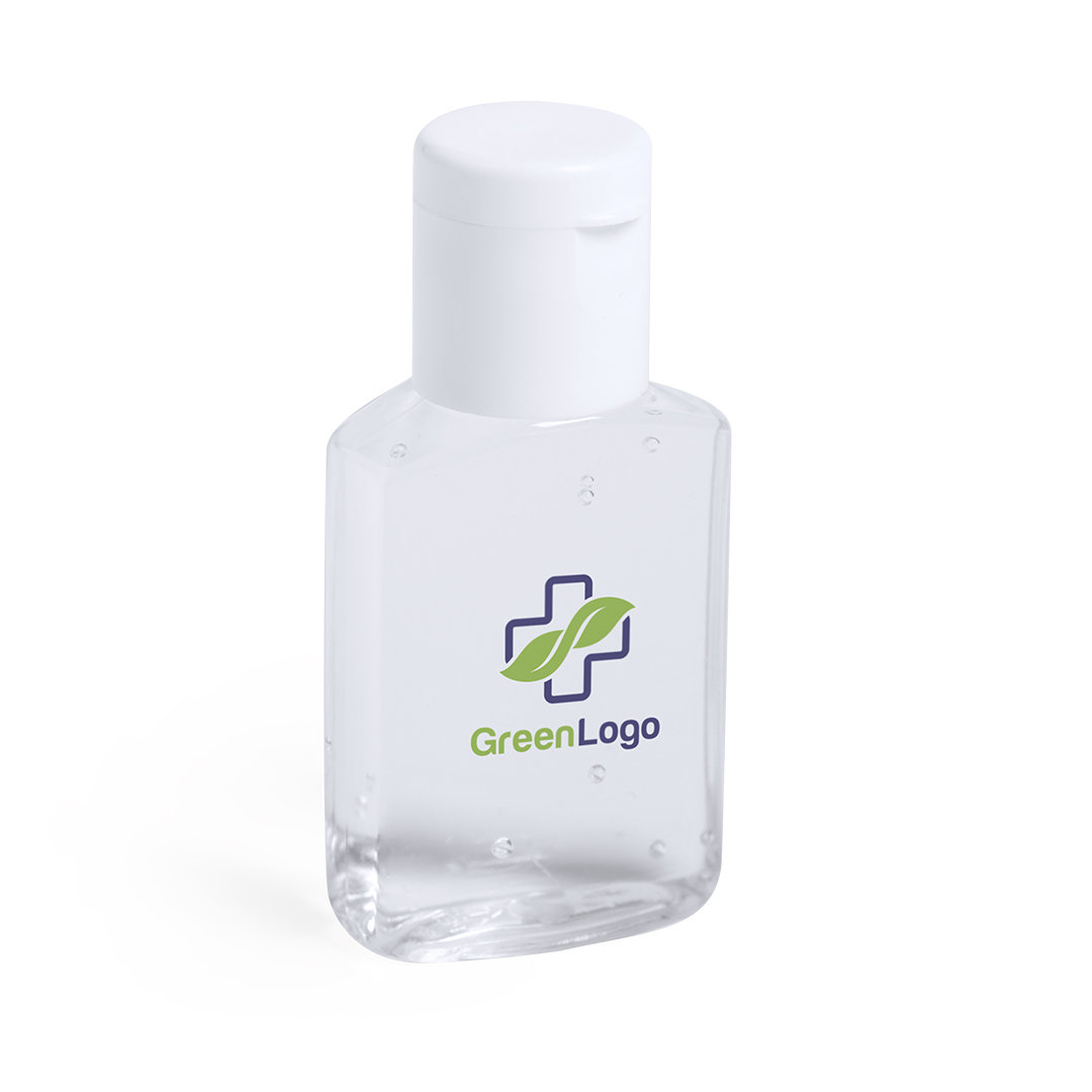 Gel para higiene y limpieza de la piel en bote de 15 ml, con dosificador y tapón de seguridad. Cuerpo transparente, con tapón en color blanco. Solución con 65% de contenido de alcohol.