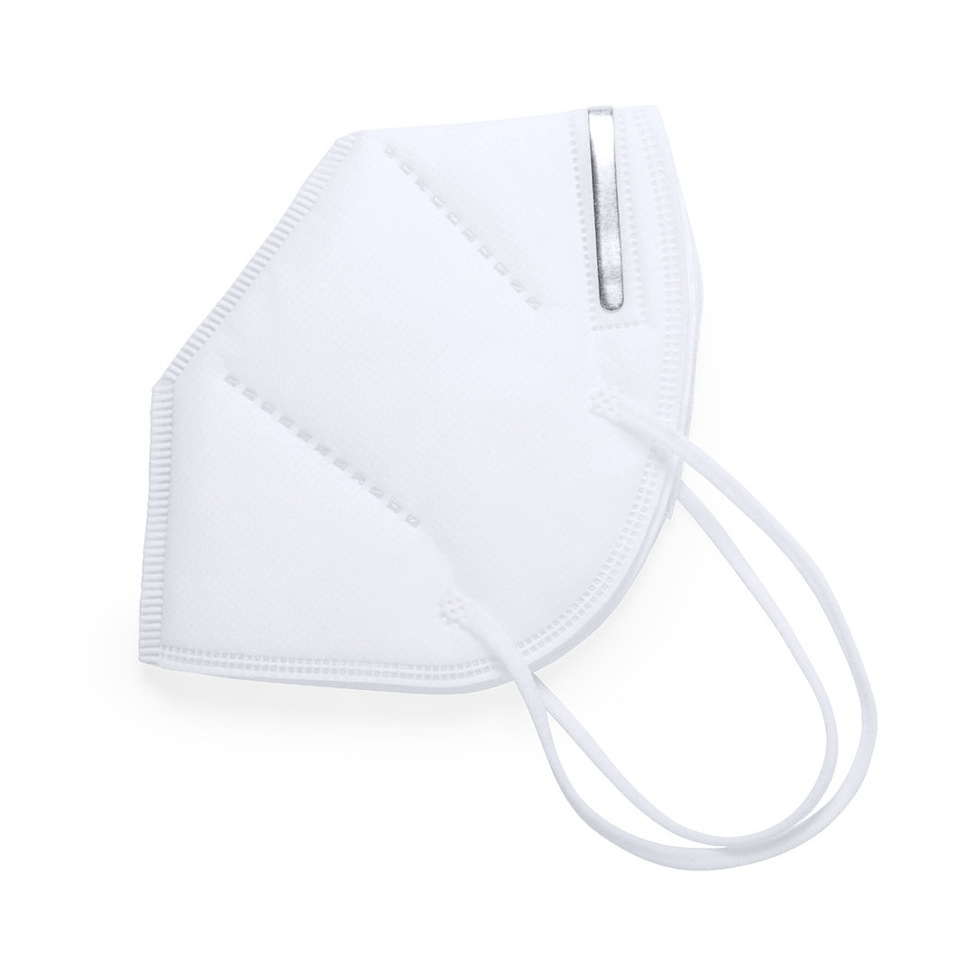 Mascarilla autofiltrante de protección y seguridad KN95 con 5 capas, de acabado termosellado. Con arneses de fijación y pinza adaptable en nariz para un firme ajuste.